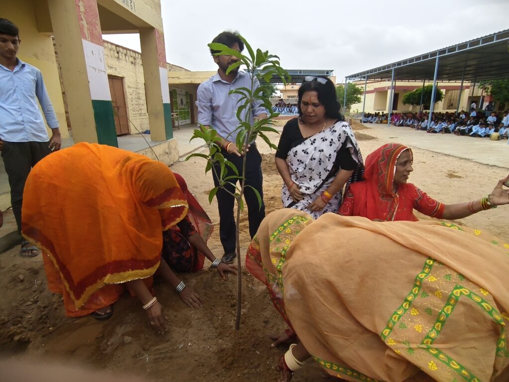 Community restoration activities also reached local schools. Women farmers and students planted mango, banyan, jamun, lemon, almond and Ashoka trees at Shiv School as part of a commitment to create a greener learning environment.