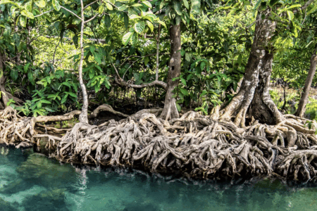 Man paddles in water among trees in China